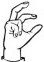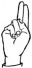 На ћирилици написано ДАМЈАН КАЗИМИРОВИЋ састоји се из 17 слова [?]. Исписано ћириличном једноручном азбуком за глувонеме: